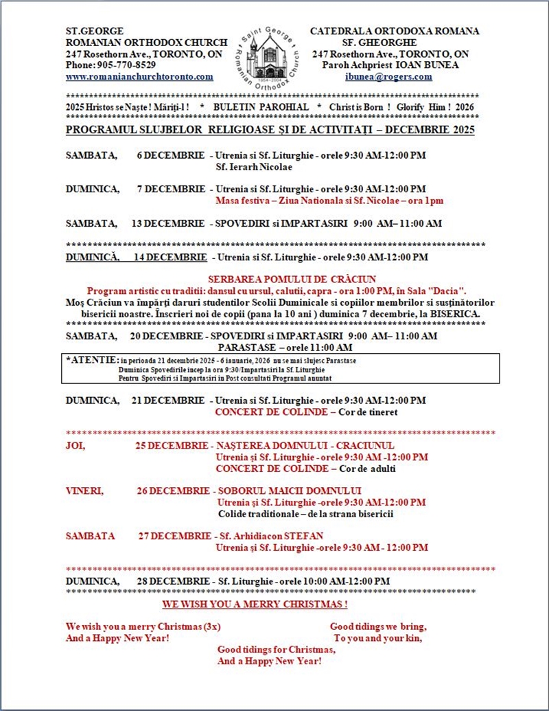 ©1999- Biserica Ortodoxă Română Sfântul Gheorghe - Toronto Ultima actualizare: 1 Decembrie 2025 |